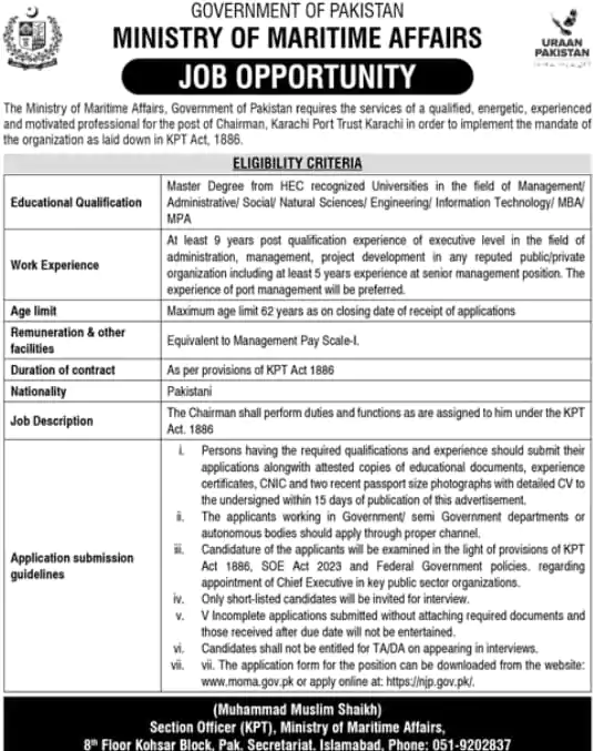 Ministry of Maritime Affairs Job Advertisement Karachi 2025: